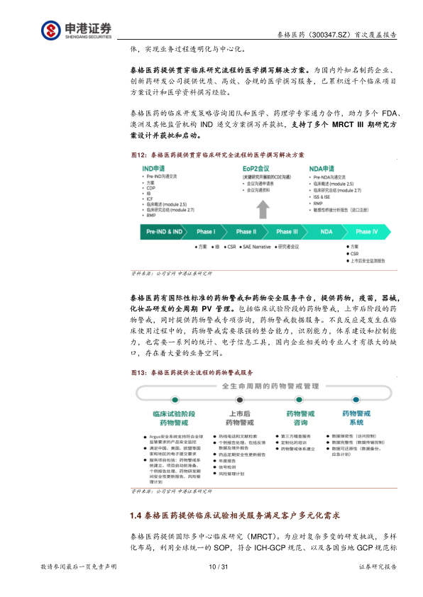 风险提示:公司作为临床试验CRO行业,人才是最关键的生产要素,存在人才成本上升及人力资源流失的风险。药物临床阶段由于开发过程漫长,成本高昂且结果充满不确定性,公司的服务合同执行周期较长,医药企业有可能提前终止临床试验,造成临床外包CRO企业业务量减少,业绩不达预期;现在国内外CRO公司较多,会面临着激烈的竞争,如果泰格医药拿不到足够的订单,可能会有损其商业前景。