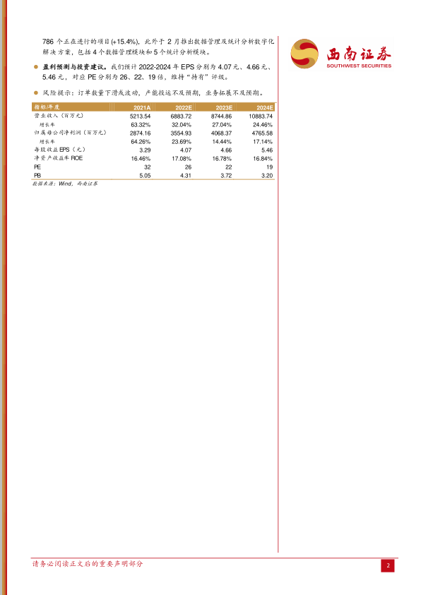 盈利预测与投资建议。我们预计2022-2024年EPS分别为4.07元、4.66元、5.46元,对应PE分别为26、22、19倍,维持“持有”评级。