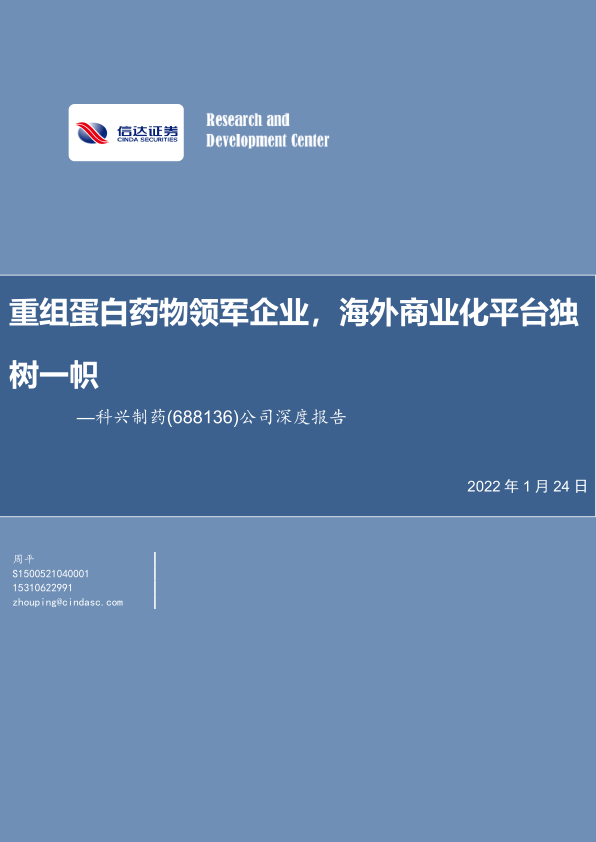 公司深度报告:重组蛋白药物领军企业,海外商业化平台独树一帜