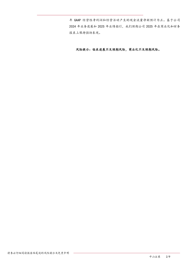首次提供明确盈利指引,预计2025年实现GAAP净利润转正。公司于2025年1月13日(美国东部时间)参加JPM医疗健康大会时首次提供了明确盈利指引,预计将实现2025年全年GAAP净利润(经营利润)为正。同时公司于2025年2月发布公告,提供了正式的2025年业绩指引,预计2025年实现营业收入352-381亿元人民币(同比+29.35%-40.00%),同时再次申明2025年GAAP经营性净利润和经营活动产生的现金流量净额预计为正。基于公司2024年业务进展和2025年业绩指引,我们预期公司2025年在商业化和财务报表上保持强劲表现。