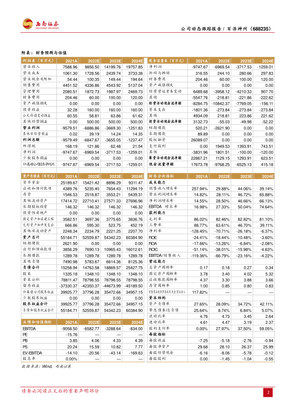本报告通过对百济神州泽布替尼的临床数据和市场表现进行分析,验证了其临床优效性,并指出其在全球市场快速放量的趋势。同时,公司积极推进新适应症的申报,为未来的增长奠定基础。尽管公司目前仍处于亏损状态,但考虑到其产品管线的潜力和市场前景,建议投资者积极关注。