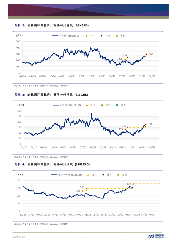 近期,百济神州的泽布替尼的海外适用范围和替雷利珠的国内医保覆盖范围均得以扩大,产品的临床和销售潜力得以进一步被释放。我们继续看好公司作为国内领先的全能新药开发平台,未来十年有向全球龙头地位发起冲击的潜力。我们上调公司2023/24E和未来年度收入预测、上调美股/港股/A股目标价至USD300/HKD180/RMB179。