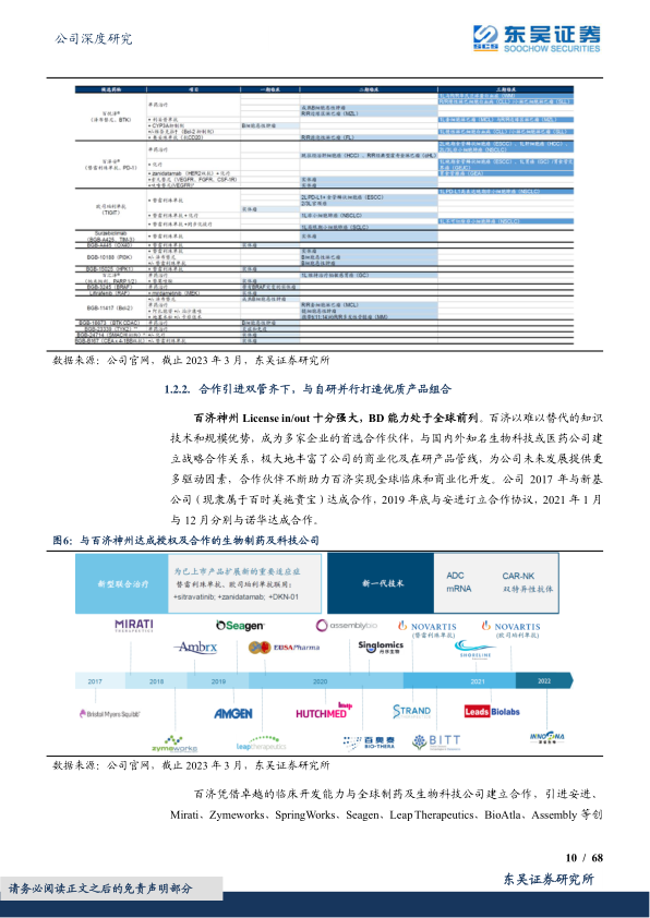 百济的全球 BD 能力和产品全球价值得到验证: 百济已与多个 MNC 及 Biotech 达成重磅 BD 交易,在交易数量、涉及产品数量和金额等方面远超同行,且能够实现双向合作,在授出自研产品同时也引入合作伙伴产品。百济的强大 BD 能力加强了百济与海外大药企间的利益绑定,提升合作成功率,并迅速加强百济在研发、商业化等方面的实力。