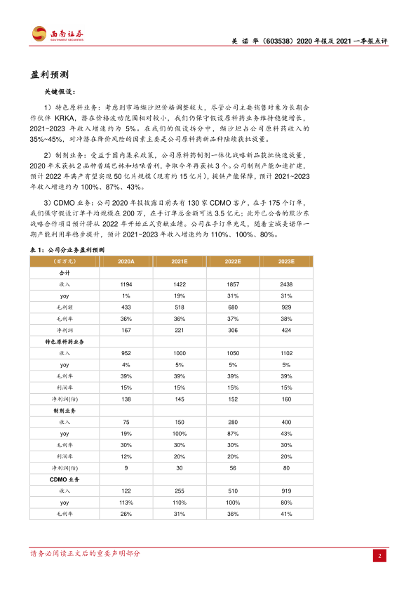 风险提示:1)原料药价格波动风险;2)战略合作项目落地速度不及预期的风险;3)固体制剂建设项目进度不及预期。