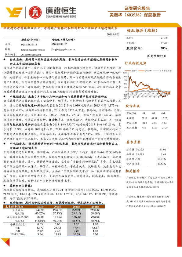 美诺华(603538)作为一家优质的特色原料药出口企业,其核心投资逻辑在于受益于国内原料药行业的结构性机遇和公司自身产能释放与制剂新品上市的双重驱动。在中短期内,公司将受益于环保趋严和药政改革带来的原料药提价周期及行业集中度提升;长期来看,公司通过原料药与制剂一体化布局,有望复制国际龙头转型制剂的成功路径,实现盈利能力的持续提升和业绩的稳健成长。