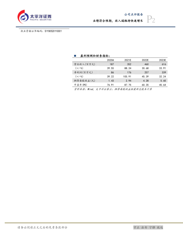 风险提示。产品订单量不及预期;客户合作进展不及预期;新品研发不及预期;竞争压力大于预期。