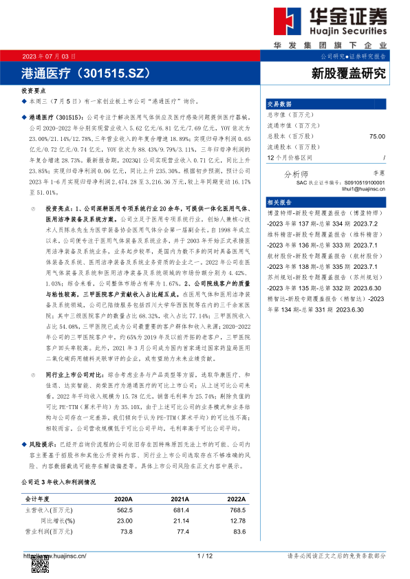 新股覆盖研究:港通医疗