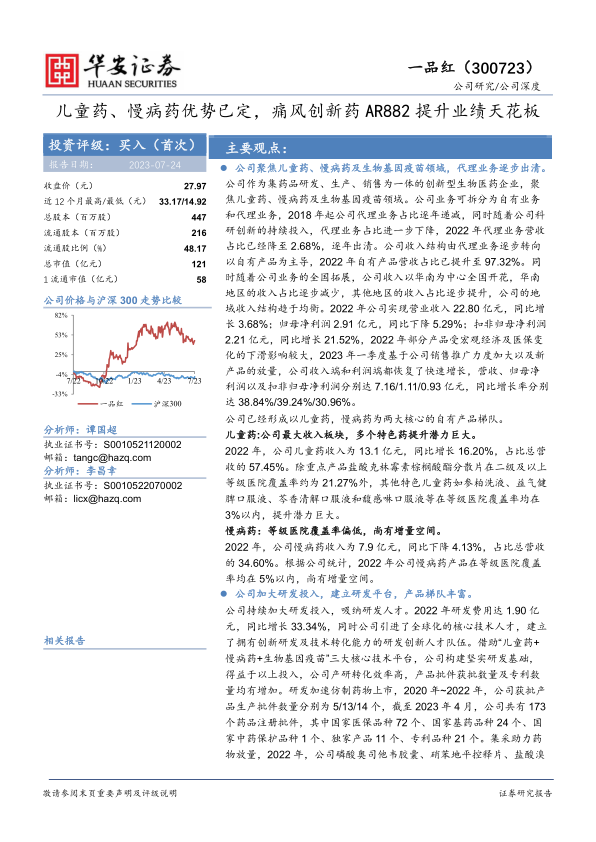 儿童药、慢病药优势已定,痛风创新药AR882提升业绩天花板