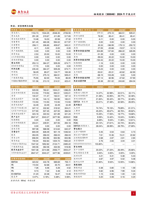 本报告对福瑞股份(300049)2024年中报进行了深度分析,核心观点如下: