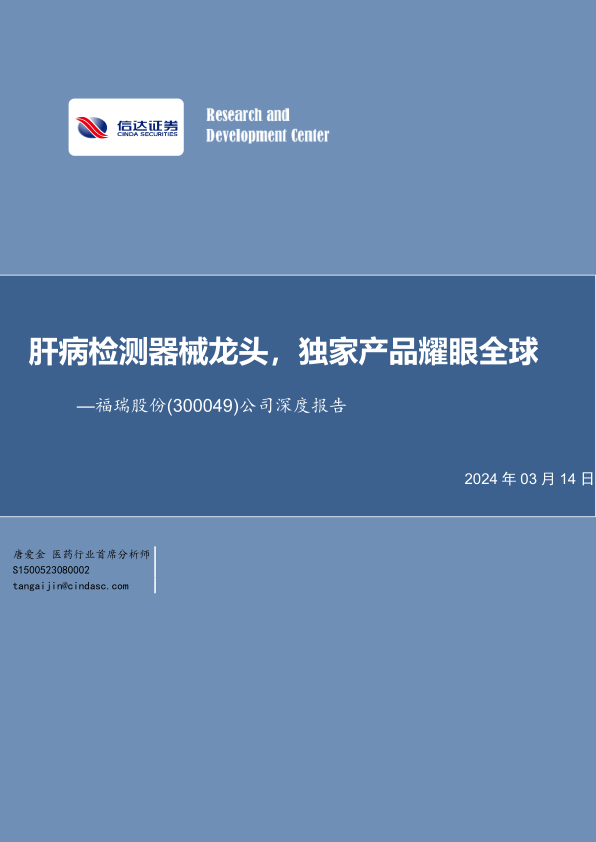 公司深度报告:肝病检测器械龙头,独家产品耀眼全球