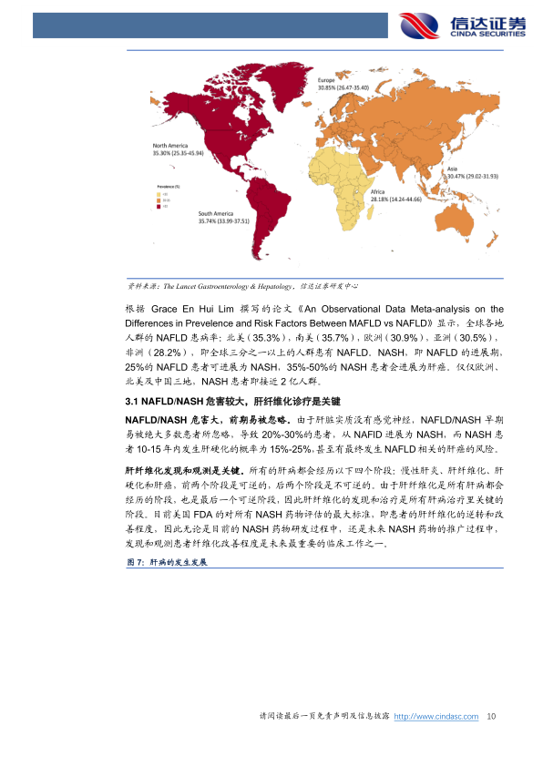 2.全球肝病发病率较高,FibroScan彰显商业价值:根据根据Grace EnHui Lim撰写的论文《An Observational Data Meta-analysis on theDifferences in Prevelence and Risk Factors Between MAFLD vs NAFLD》显示,全球各地人群的NAFLD患病率:北美(35.3%),南美(35.7%),欧洲(30.9%),亚洲(30.5%),非洲(28.2%),即全球三分之一以上的人群患有NAFLD;25%的NAFLD患者可进展为NASH,35%-50%的NASH患者会进展为肝癌。仅仅欧洲、北美及中国三地,NASH患者即接近2亿人;FibroScan具有无创性、准确率高、检测时间短、定量等特点,优势明显,有望成为全球脂肪肝和肝纤维化的主流日常伴随诊断措施。
