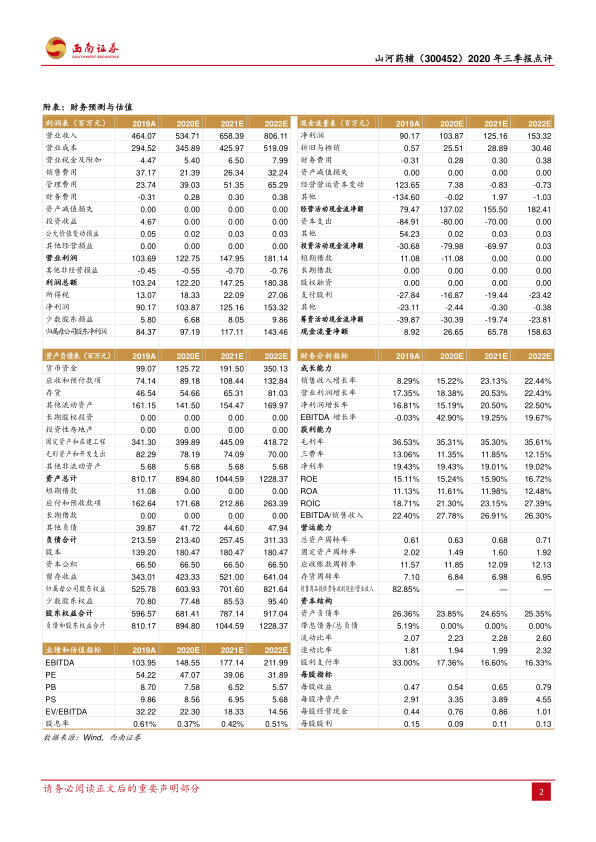 本报告分析了山河药辅(300452)2020年三季报,核心观点如下:
