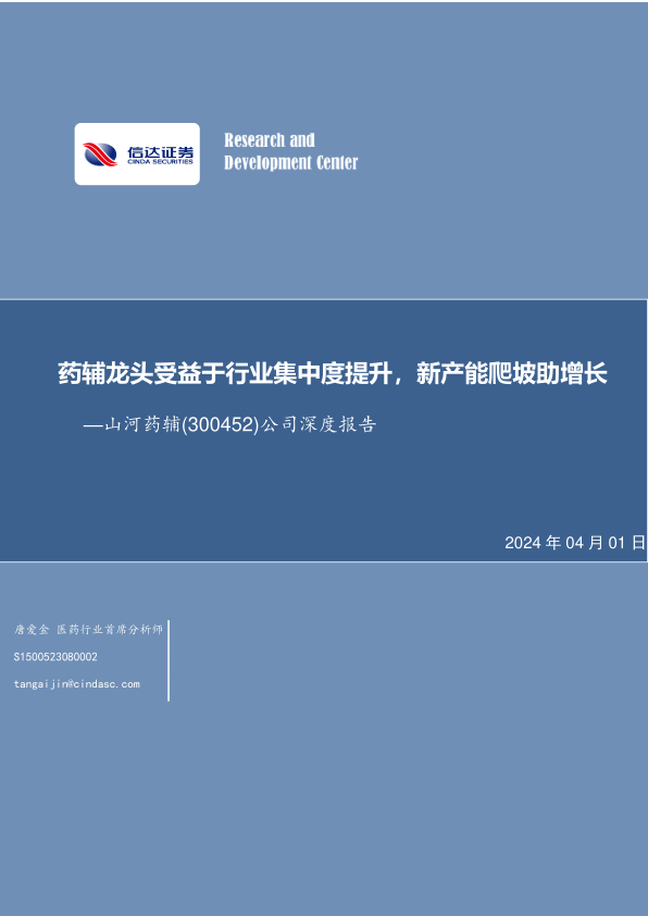 公司深度报告:药辅龙头受益于行业集中度提升,新产能爬坡助增长