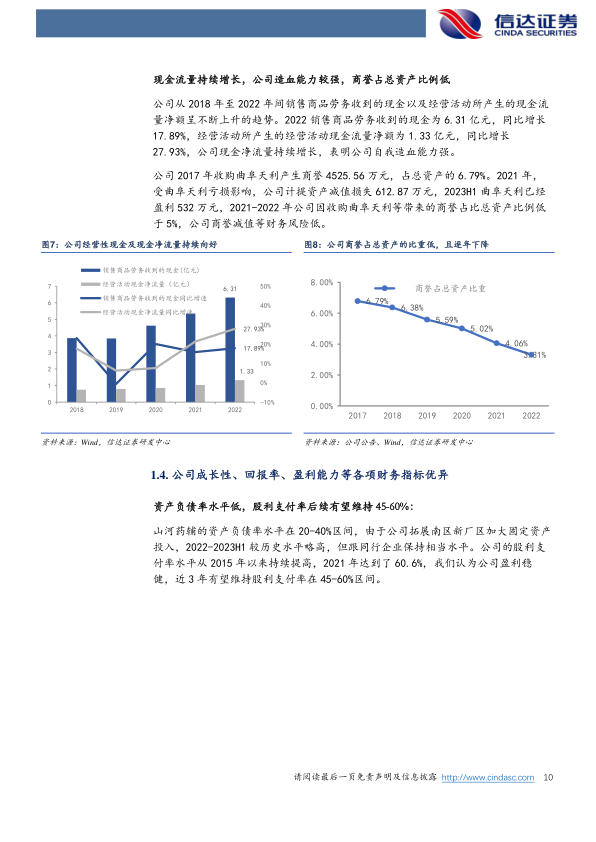 山河药辅技术品种及规模成本优势突出,9000吨新产能助增长:①公司有39种产品获得CDE的药用辅料登记号,其中优势领域纤维素类产品登记注册21个,远领先于国内同行;②公司已通过共同审评的纤维素类产品羟丙甲纤维素、低取代羟丙纤维素、羧甲纤维素钠、交联羧甲纤维素钠等,能够满足药企的大部分需求;③羟丙甲纤维素邻苯二甲酸酯、羧甲纤维素钙、醋酸羟丙甲纤维素琥珀酸酯以及乳糖粉状纤维素共处理物等高端产品具备领先优势。④根据PHEXMALL药用辅料网上采购平台的数据,进口纤维素类产品价格显著高于国产厂家同类产品的价格,山河药辅的纤维素类产品比国内同行性价比突出。⑤公司参与了国家的《药用辅料生产质量管理规范》的起草和定稿及药用辅料质量标准的修订工作,持续加码研发开拓新品,并于2022年开发收款注射用辅料龙胆酸;⑤规模成本优势下,公司毛利率及ROE优于同行,合同负债高速增长说明订单饱满;⑥新厂区9000吨产能投产后拉动公司产能有望超2万吨,产能爬坡提升产能利用率助力业绩增长。