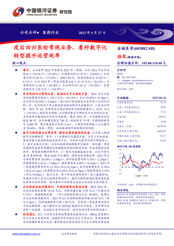 疫后回归医检常规业务,看好数字化转型提升运营效率