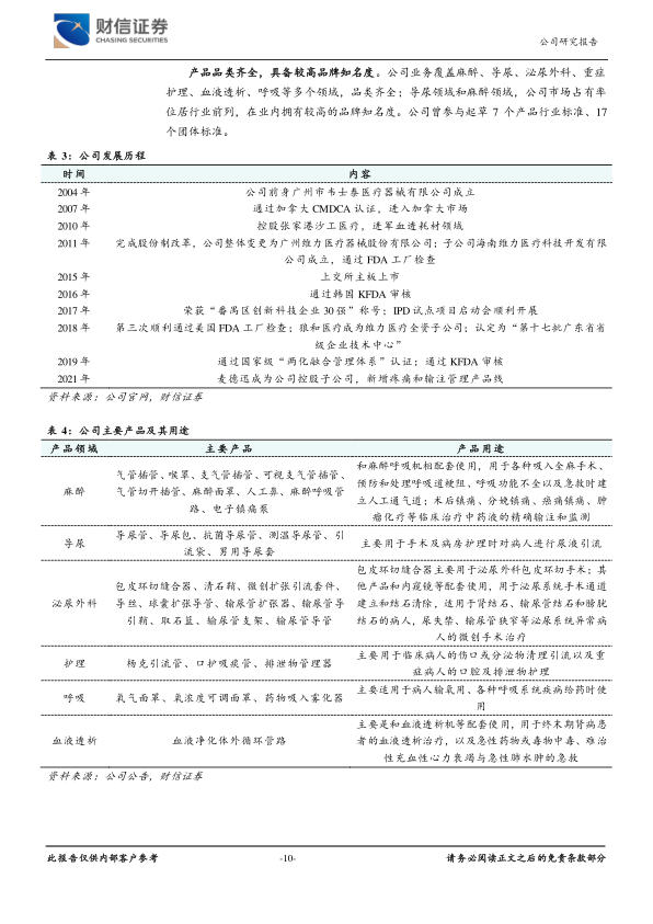 公司为国内医药导管龙头,实力雄厚。公司是国内医用导管行业龙头企业。公司业务包括麻醉、导尿、泌尿外科、护理、血液透析、呼吸等领域,导尿领域和麻醉领域市场占有率位居行业前列。在国内市场,公司已覆盖全国超过4000家医院,其中超过1000家三甲医院,并建立专业的学术推广队伍。在海外市场,公司已进入欧盟、北美、日韩等主流市场,产品远销90余个国家或地区,与上百家国外医疗器械经销商、数十家国内出口贸易商进行业务合作。