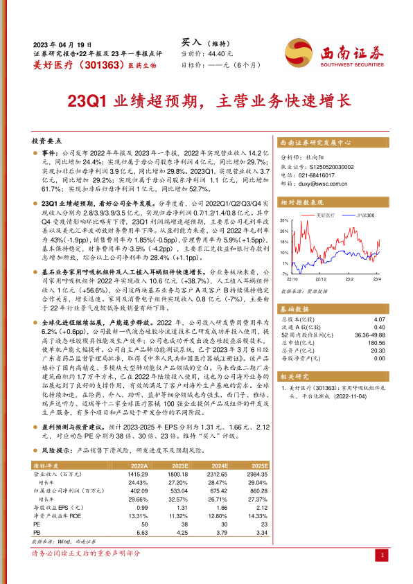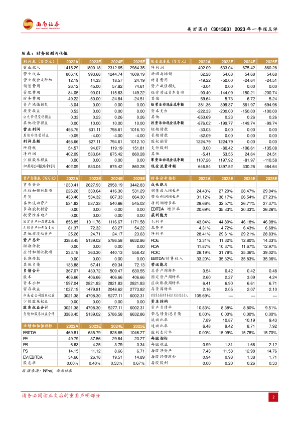 本报告对美好医疗2022年年报及2023年一季报进行了深入分析。公司2023年一季度业绩超预期,基石业务保持快速增长,全球化进程持续推进。报告维持“买入”评级,并提示了相关风险。