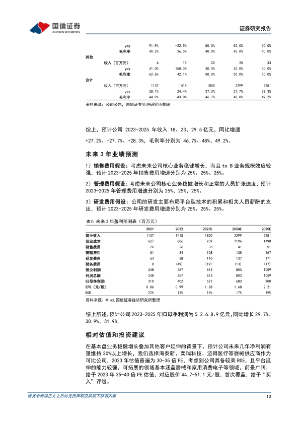 投资建议:预计2023-2025年归母净利润5.2、6.8、9亿元,分别同比增长29.7%、30.9%、31.9%,对应PE分别为30、23、18倍,参考可比公司,给予2023年35-40倍PE估值,对应股价44.7-51.1元/股,首次覆盖,给予“买入”评级。