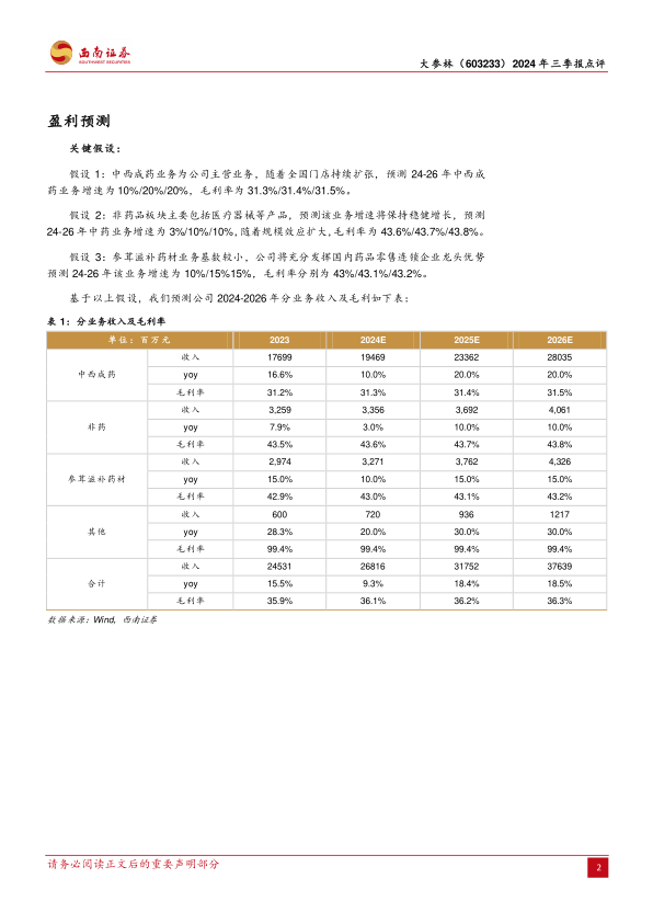 大参林2024年三季报显示,公司在保持营收稳健增长的同时,积极扩张加盟门店,进一步巩固了市场地位。报告通过详细的数据分析,对公司的盈利能力、费用控制和门店扩张情况进行了评估,并基于关键假设对公司未来盈利能力进行了预测。同时,报告也提示了投资者需要关注的潜在风险,为投资者提供了全面的参考信息。