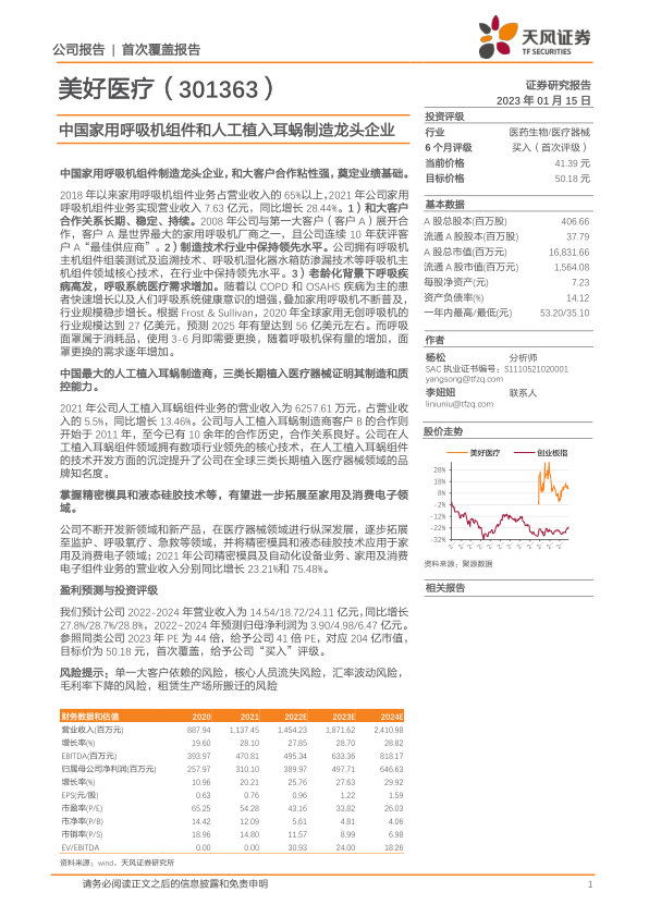 尽管公司面临单一大客户依赖、汇率波动、核心人员流失以及毛利率下降等潜在风险,但基于其稳健的财务表现、领先的技术优势、持续扩大的市场需求以及积极的业务拓展策略,报告对美好医疗的未来发展持乐观态度,并给予“买入”评级,目标价50.18元。