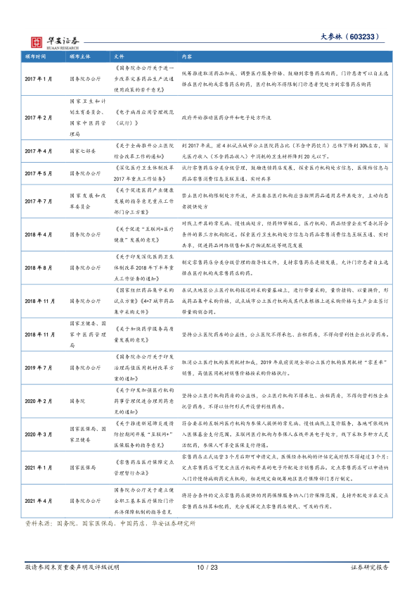 中期增量:政策加持,处方外流走上快车道。无论是从政策上还是数据上来看,处方外流都是确定性方向。尤其是在近年来药品“零加成”、带量采购、双通道政策、处方流转平台等重磅政策的推行下,零售端的价值越来越被处方药厂家所重视。随着“双通道”+“两定”等政策的落地,线下渠道的价值将进一步强化,预计在中期的3-5年内处方外流会走上快车道。