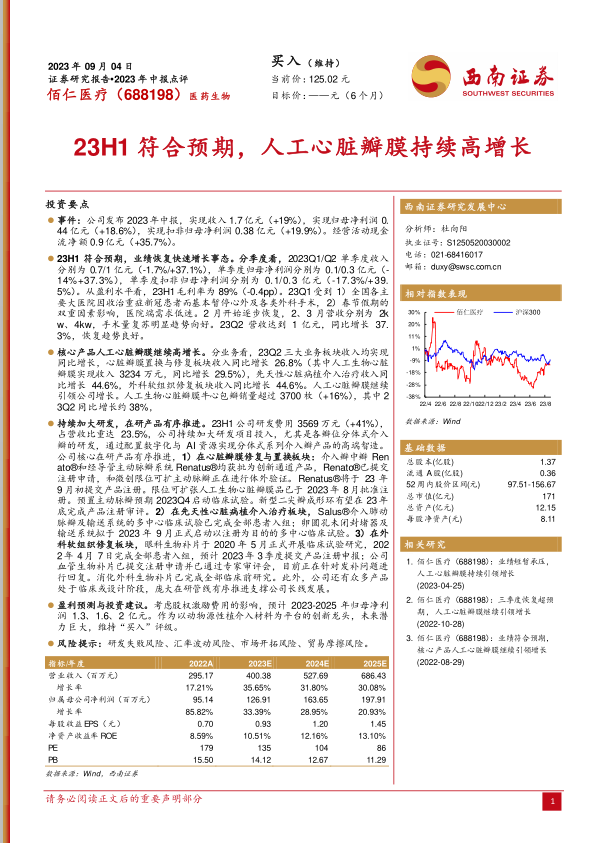 佰仁医疗2023年上半年业绩表现稳健,尤其在第二季度实现了强劲复苏,显示出其核心业务的强大韧性。人工心脏瓣膜作为主要增长引擎,持续贡献高增长。公司持续高强度投入研发,构建了丰富且进展顺利的产品管线,为未来的持续增长提供了坚实保障。鉴于其在创新医疗器械领域的领先地位和广阔的市场前景,公司被维持“买入”评级,具备显著的长期投资价值。
