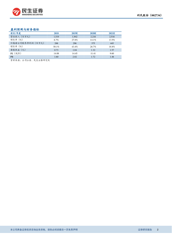 利民股份在2019年一季度展现出强劲的业绩增长,主要得益于核心产品百菌清的市场景气度提升和产能释放。公司通过稳步推进多项在建产能项目,旨在进一步提升生产能力和产品竞争力。同时,公司积极进行战略性收购,拟通过并购新奥威远来丰富产品线,布局明星农兽药品种,并完善农化产业链布局,为未来业绩增长注入新动力。鉴于公司良好的发展态势、明确的增长策略以及当前估值优势,民生证券维持其“推荐”评级。然而,投资者仍需关注在建项目进度不及预期、产品价格出现超预期波动以及估值模型局限性等潜在风险。