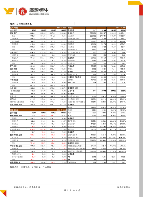 偿债能力方面,资产负债率预计将从2017年的38.36%在2020年降至31.33%,流动比率和速动比率也将显著改善,表明公司财务结构将更加健康,偿债风险降低。
