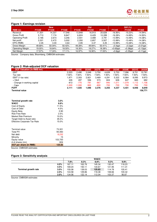 Maintain BUY. We expect hospital procurement to gradually recover from4Q24. Based on a 9-year DCF model, we adjust the target price to RMB 125.83(WACC: 8.8%, perpetual growth rate: 3.0%).