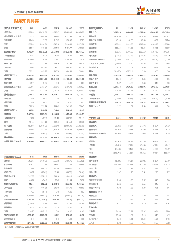 盈利预测:我们预计公司2023-2025年营业收入分别为117.76/150.37/187.23亿元,归母净利润分别为20.52/25.61/31.53亿元(2023/2024前值分别为23.88/29.91亿元),下调原因主要系公司持续加大研发和销售的投入力度,短期净利润受到一定影响,维持“买入”评级。