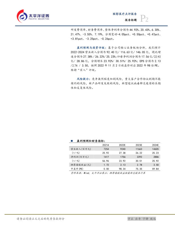 本报告分析了联影医疗2022年第三季度业绩,公司在国内外市场均取得稳健增长,但受多重因素影响,盈利能力有所下降。公司加强内部管理,费用率有所下降。维持对公司未来业绩增长的乐观预期,维持“买入”评级,但需关注相关风险。