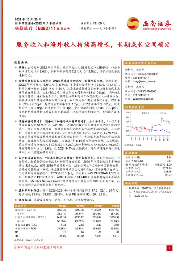 本报告分析了联影医疗(688271)2022年三季报,核心观点如下:
