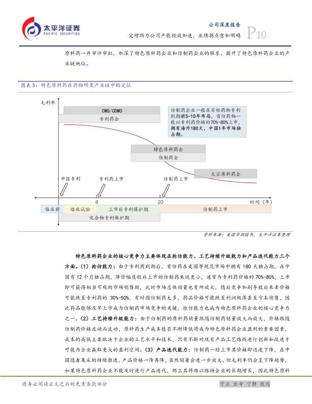 特色原料药与专利原料药行业壁垒较高,毛利率高于大宗原料药。企业纵向延伸和横向拓展能力强,可向“原料药+制剂”一体化或CDMO等领域发展。