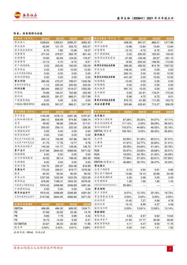 本报告对康华生物(300841)2021年半年报进行了深度分析,核心观点如下: