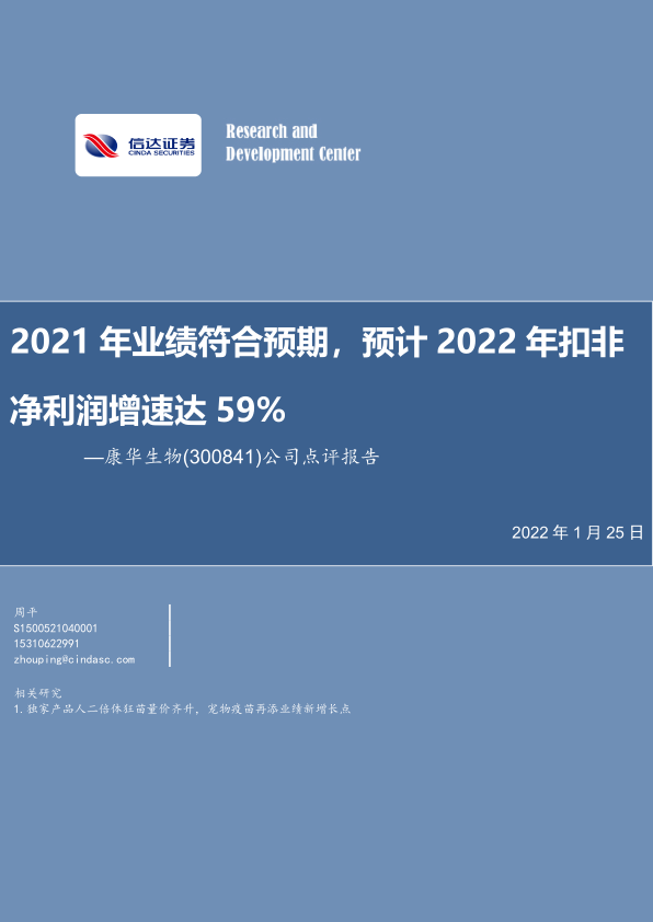 公司点评报告:2021年业绩符合预期,预计2022年扣非净利润增速达59%