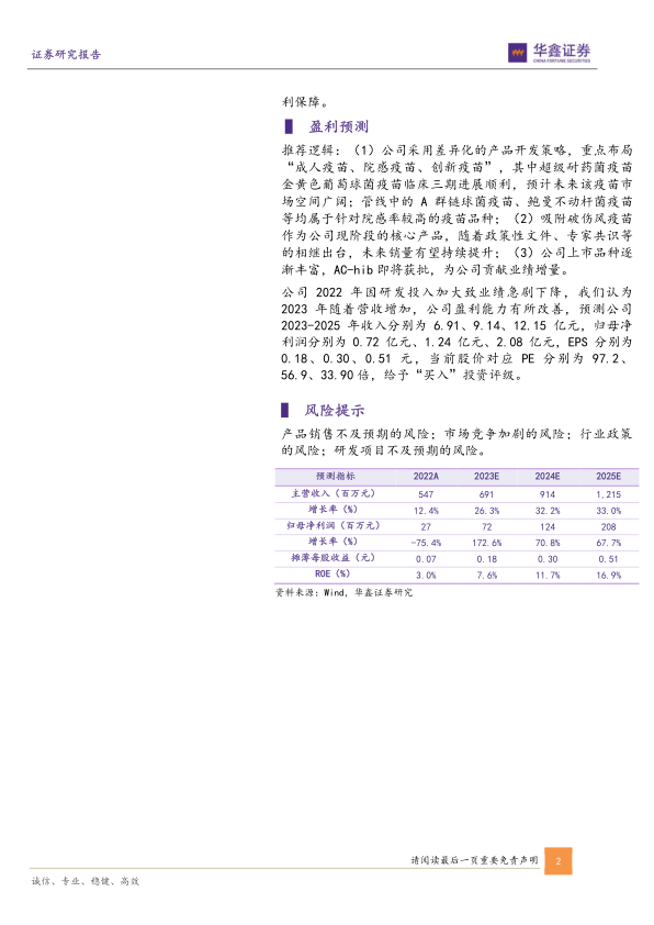 报告提示了欧林生物可能面临的风险,包括产品销售不及预期的风险、市场竞争加剧的风险、行业政策变化的风险以及研发项目进展不及预期的风险。