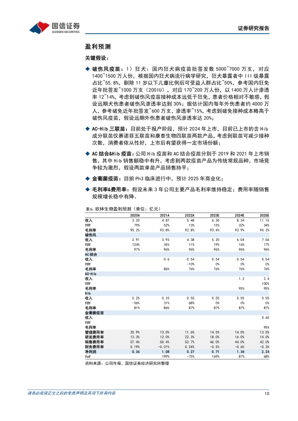 欧林生物是一家“小而美”的民营疫苗企业,依托老产品破伤风疫苗开辟成人新市场,随着国内政策不断完善,成人破伤风疫苗市场有望进一步扩容;AC-Hib三联苗报产,丰富儿童疫苗产品管线,未来贡献业绩增量;长期布局“超级细菌”疫苗管线,重组金葡菌启动Ph3临床,全球进度领先,有望填补业界空白。预计公司2023-2025年收入分别为6.30/8.33/11.14亿元,归母净利润0.71/1.34/2.24亿元,目前股价对应PE为92/49/29x。结合绝对估值和相对估值,我们认为公司的合理股价区间为17.88~19.16元,相对目前股价有10%~18%的上涨空间。首次覆盖,给予“增持”评级。