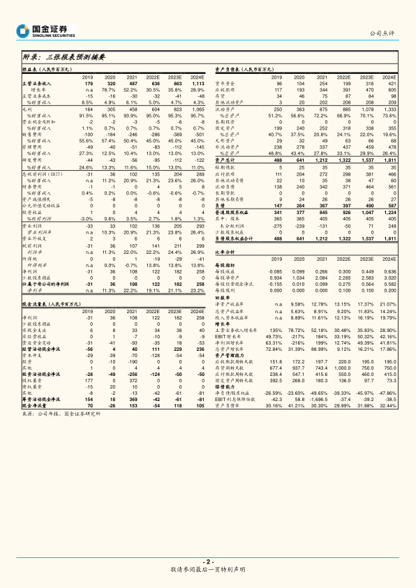 我们维持盈利预测,预计公司2022/23/24年实现营收6.36/8.63/11.13亿元,同比增长30.5%/35.8%/28.9%;考虑到公司进一步加大研发投入,我们下调2022/23/24年归母净利润6.37%/7.69%/2.69%至1.22/1.82/2.58亿元。维持“增持”评级。
