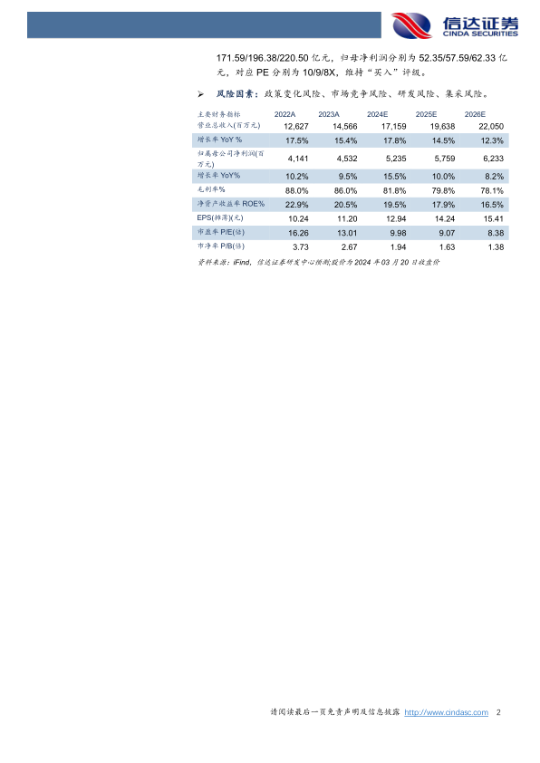 风险因素:政策变化风险、市场竞争风险、研发风险、集采风险。