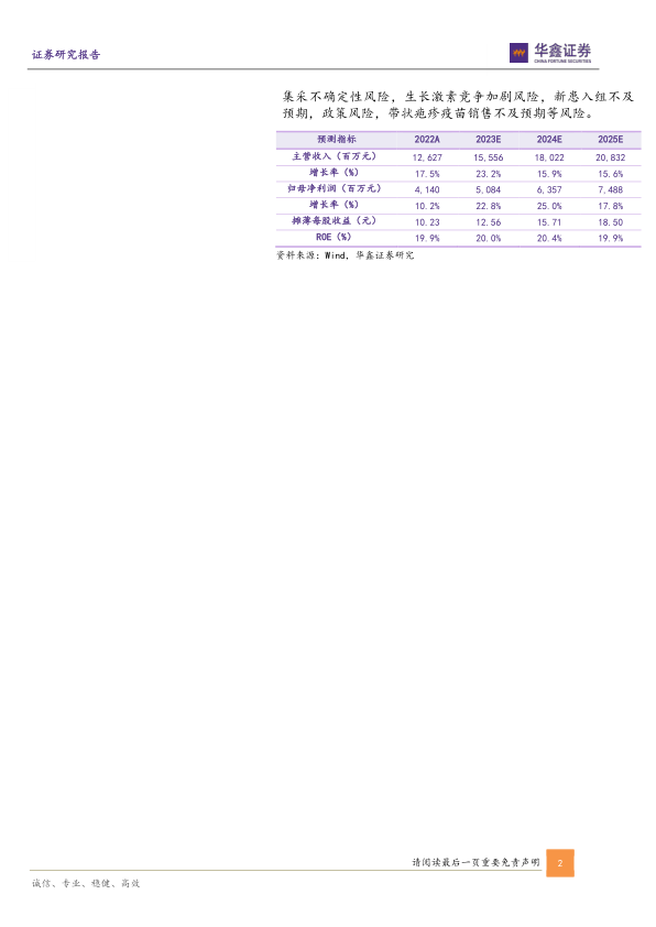 集采不确定性风险,生长激素竞争加剧风险,新患入组不及预期,政策风险,带状疱疹疫苗销售不及预期等风险。