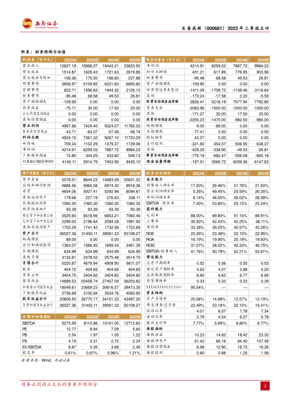 本报告分析了长春高新(000661)2023年三季报,核心观点如下:
