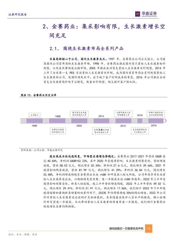 金赛药业作为长春高新的核心子公司,自1998年推出国内首只重组人生长激素粉针剂型,2005年推出亚洲首支水针剂型,2014年上市全球首支PEG长效重组人生长激素水针剂,成为国内首家布局全系列剂型的公司,并于2016年推出配套电子注射笔,显著提升患者依从性。公司产品线丰富,涵盖儿童生长发育、辅助生殖、妇女健康等领域。