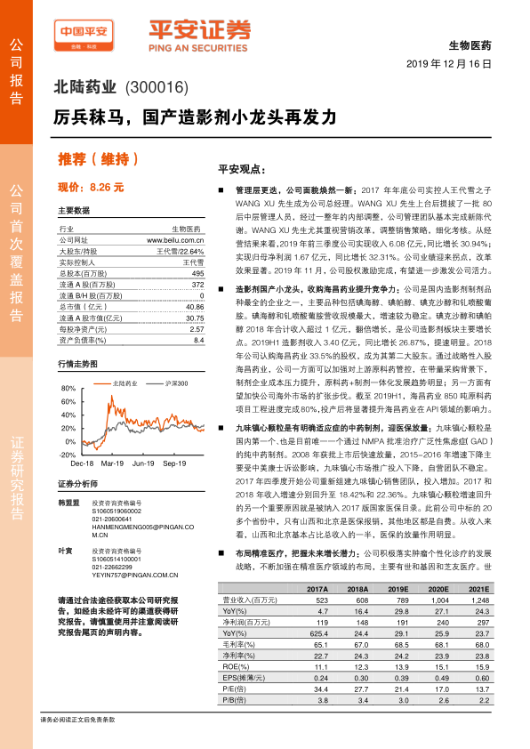 本报告对北陆药业进行了首次覆盖,核心观点如下: