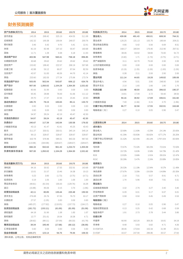 预计公司对比剂业务明年保持25-30%的增长,肿瘤诊疗服务发展可期。预计2016-18年EPS分别为0.05元、0.96元(包括营业外收入2.4亿,基础业务EPS0.35元)和0.47元,对应PE分别为305倍、17倍和34倍,参考同类公司估值,给予公司2017年50倍估值,目标价17.50元,首次给予增持评级。