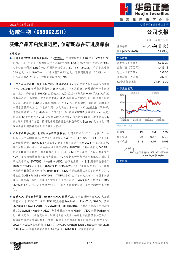 华金证券首次覆盖迈威生物,给予“买入-A”投资评级。