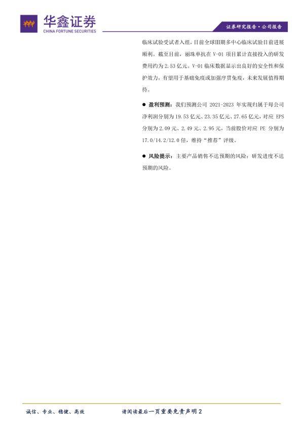 公司持续加大销售和研发投入,以巩固市场地位并推动创新。特别是新冠疫苗V-01项目进展顺利,已进入全球多中心Ⅲ期临床试验,并展现出良好的安全性和保护效力,有望成为公司未来的重要增长点。分析师维持“推荐”评级,对公司未来盈利能力持乐观态度。