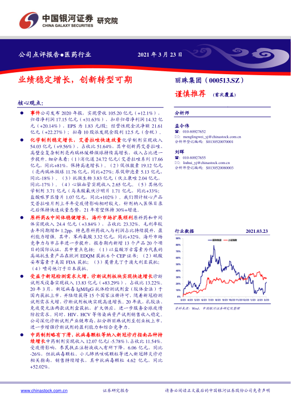 本报告对丽珠集团(000513.SZ)进行了深度分析,核心观点如下: