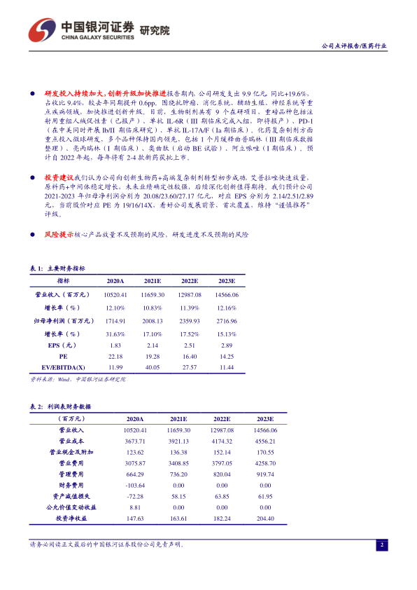 公司持续加大研发投入,积极推进创新转型,未来有望迎来更多创新产品上市,进一步提升盈利能力。首次覆盖,维持“谨慎推荐”评级。但同时也需关注核心产品放量不及预期以及研发进度受阻的风险。
