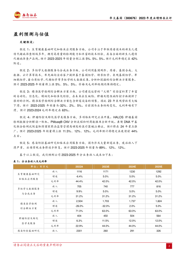 本报告对华大基因(300676)2023年度业绩预告进行了点评,分析了公司常规业务的恢复情况、海外本地化平台的进展以及未来的盈利预测与投资建议。
