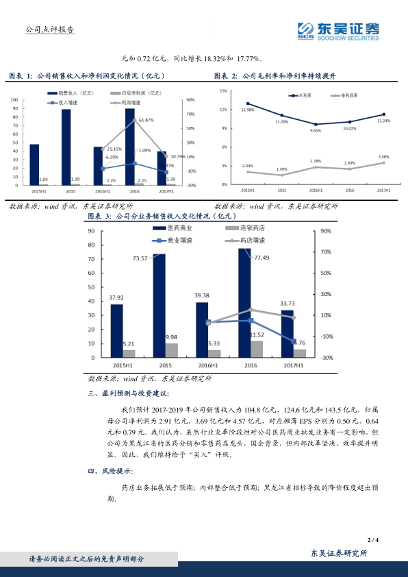 报告认为,尽管行业变革对公司医药商业批发业务产生阶段性影响,但人民同泰作为黑龙江省医药分销和零售药店龙头,内部改革坚决,效率提升明显,因此维持“买入”评级。